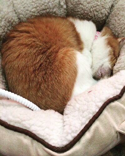本格的な冬になる前に、ミミ様にマット型ヒーターを買いました 1、丸型ので、いつものお鍋型ベットに入れるのにぴったり 2、裏と表で温度が異なります 3、入ってくれました!ヒーターでベットはポカポカです こたつとヒーターで寒さ対策万全に