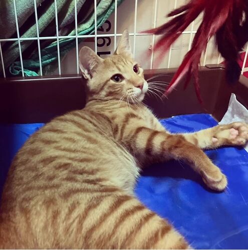 ネズミや羽のおもちゃで遊ぶのが大好き。 体力が無限にあるんじゃないかと思うぐらい、遊びまくります。 ミミ様はふわふわのねこじゃらしが好きだったけど、チャチャさんは紐で吊るすタイプのおもちゃが好きみたい😊